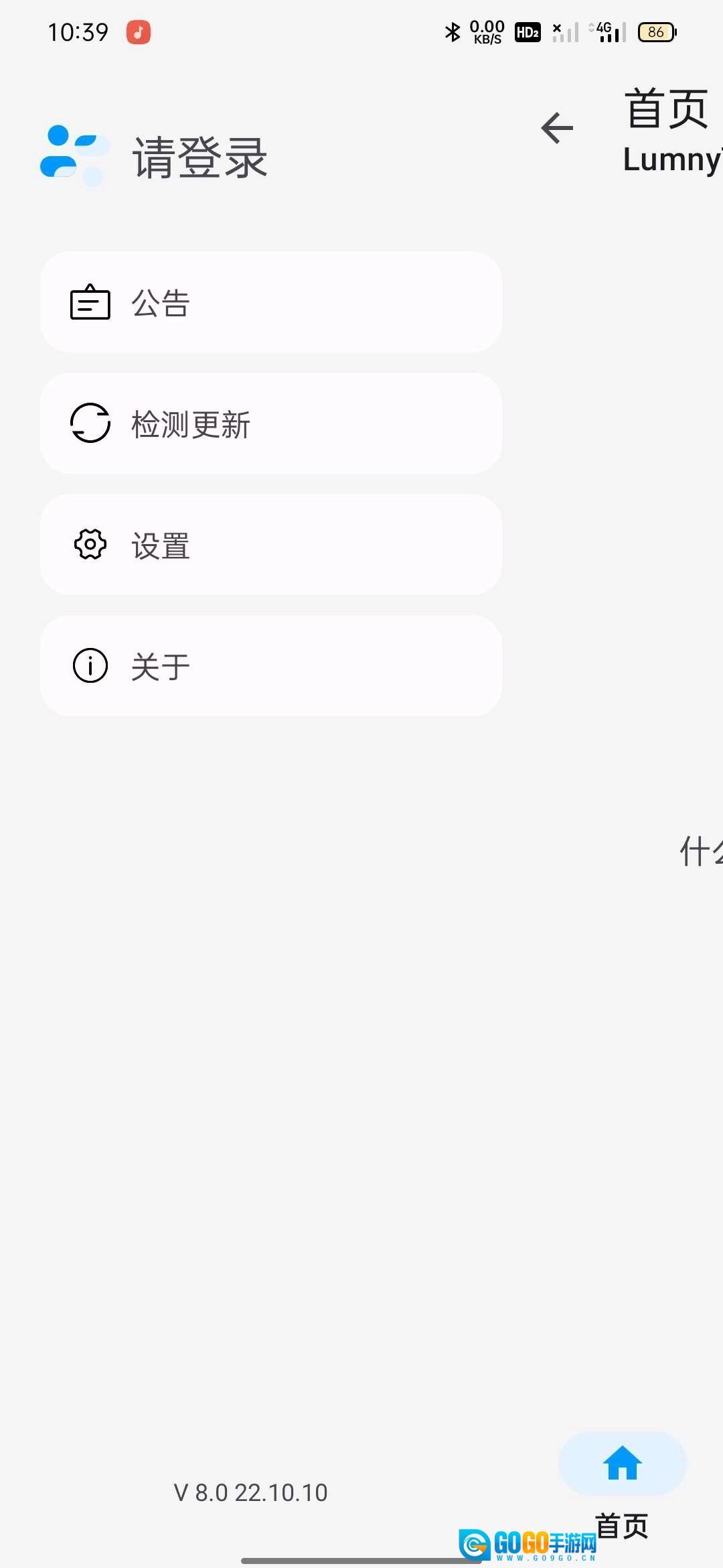 2.进入的首页,点击左上角三条横线,点击【请登录】