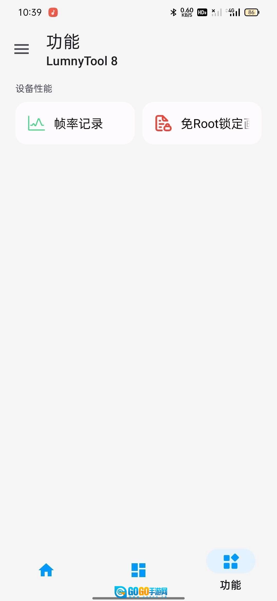 5.点击【功能】,看到【帧率记录】和【免Root锁定画质】