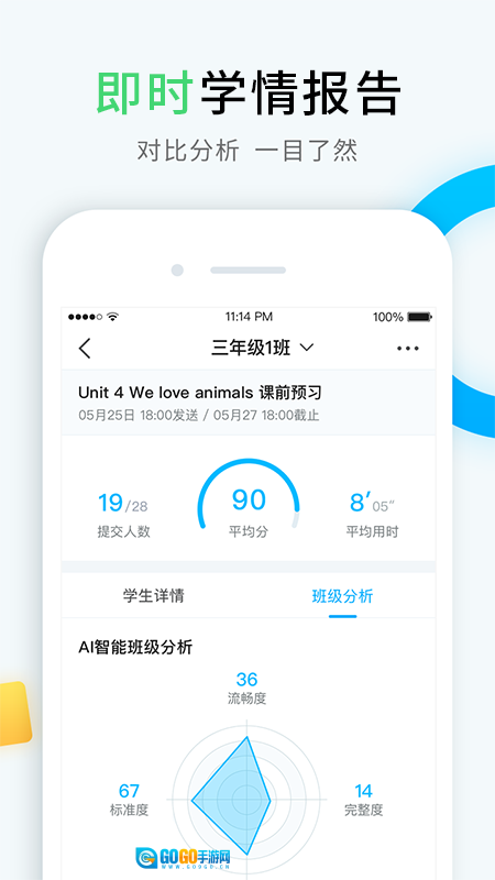2、通过查看班级的作业完成数据,便能了解班级的学习状态。