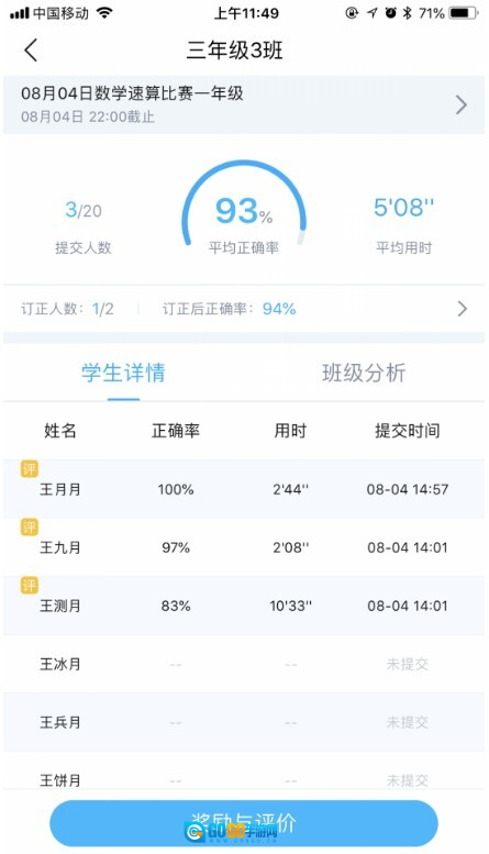 1. 依据学生作业的完成状况,能够发放相应的奖励。