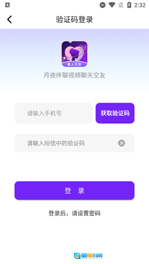 请开启月夜伴聊这款视频聊天交友App,接着点击进入登录界面。