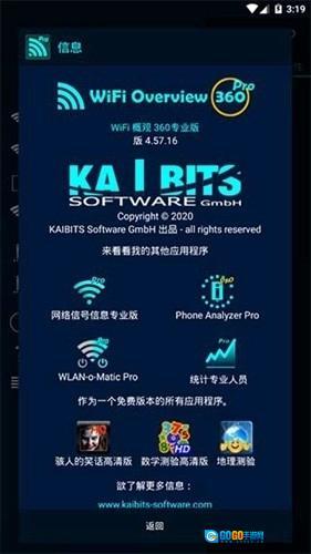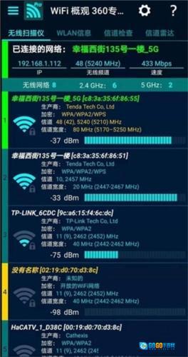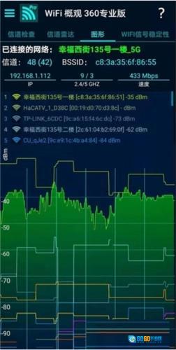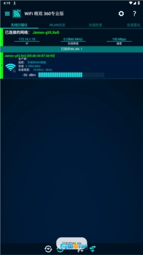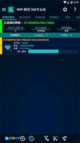 WiFi概观360专业版(WiFiOverview360Pro)是北京奇虎科技有限公司推出的一款手机WiFi检测工具。这款软件功能强大,能帮助用户快速完成检测,提供无线扫描、WLAN信息查询、信道检查、信道雷达、图形化展示、WiFi信号稳定性监测等实用功能,且支持一键操作,为用户带来极大便利,确保操作过程顺畅无忧。
