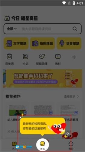 3、看到第二个“资讯”,这里能获取到最新鲜的校园资讯。