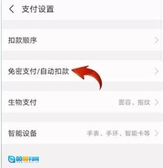2、接着依次点击【支付设置】选项,再点击其中的【免密支付/自动扣款】选项。