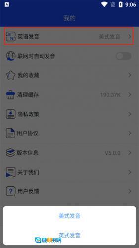 6、另外,点击我的,用户还可以根据需求切换中式发音和美式发音;