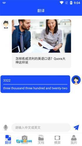 2、用户可以点击下方输入框,输入需要翻译的中文,如“3322”,点击发送,软件就会在发送信息的下方自动翻译成英语;