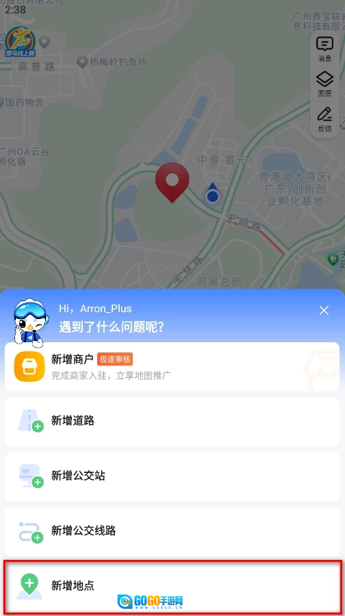 根据自己需求选择类型,这里以新增地点为例