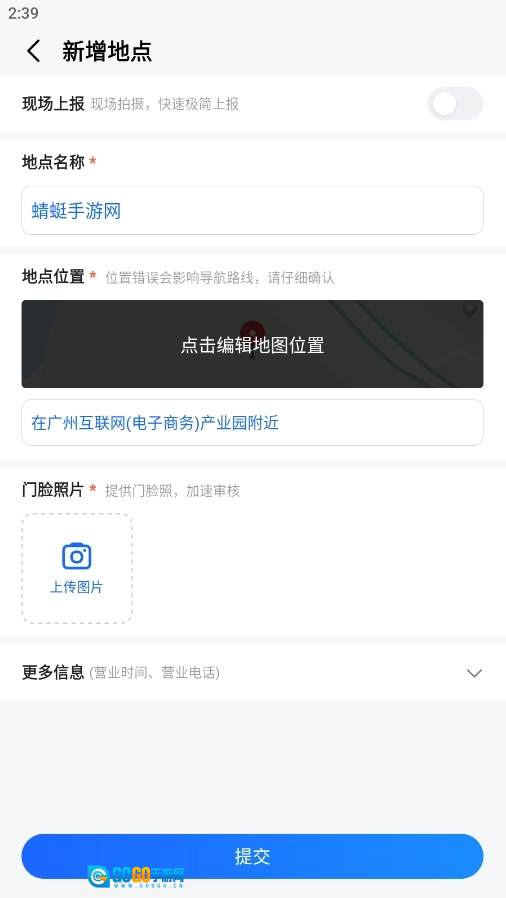 输入地点信息后点提交即可