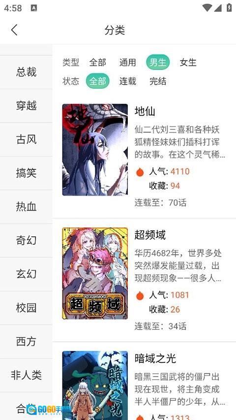 2、漫画分类清晰,你很容易就能找到