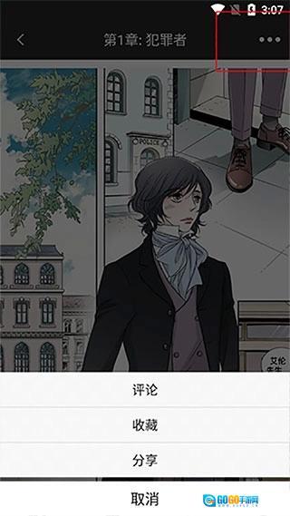 在漫画的右上角有三个小点,大家只需要点击那三个小点就能将自己喜欢的漫画分享给好友。