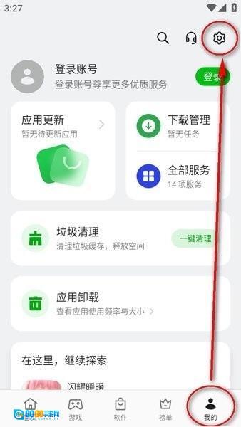 2、然后在个人中心点击"设置",找到应用更新进入。