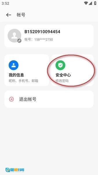 2、然后在目录账号点击"安全中心"。