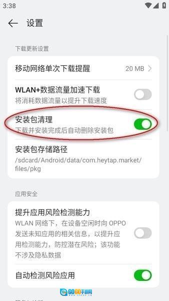 2、如图,在设置中关闭"安装包清理"的开关即可。