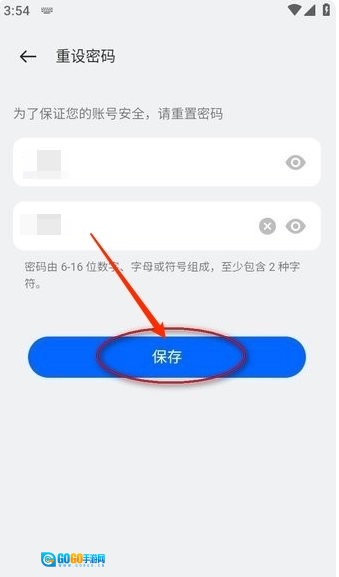 4、最后完成短信严重后,重置新密码,点击"保存"即可。
