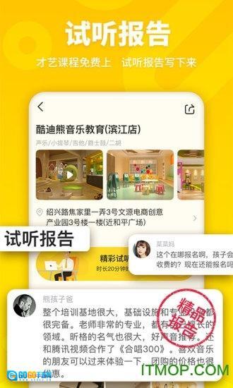 全新推出才艺机构试听课与课程评价功能。我们精心为您挑选优质机构的试听课,支持在线预约,线下直接开启试听试学,流程顺畅便捷。您可以用图文结合的方式自主上传试听课报告,真实客观地感受机构课程水准。同时,还能查看其他学伴的报告,让选择课程不再困扰。