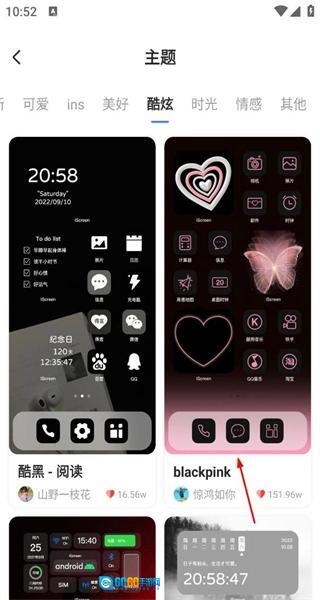 3、在酷炫主题列表中找到blackpink主题,点击该主题进入其详情展示界面,查看主题的样式效果。