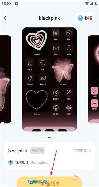 4、在blackpink主题详情页,查看主题的多面展示效果,点击底部VIP全场享按钮,可获取该主题的使用权限。