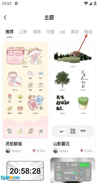 2、在主题页面选择推荐分类下的酷炫标签,切换到对应的主题展示列表,查看各类酷炫风格的主题内容。