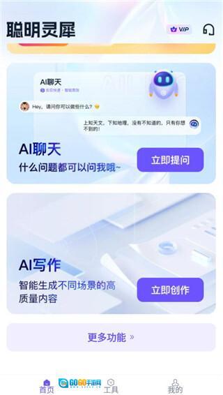 1、启动软件后进入首页,这里设有AI聊天与AI写作功能。无论您有任何疑问,都能向AI咨询;AI还能针对不同场景,生成高品质的内容。