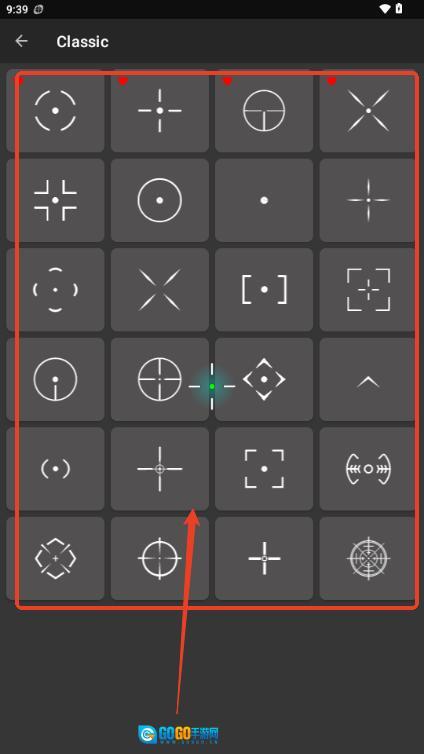 2、在这里可以选择各种各样的准星;