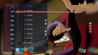 2.点击手机屏幕后,左侧会呈现央视、卫视、地方台的节目单,下面小编就以点击卫视为例来进行说明。