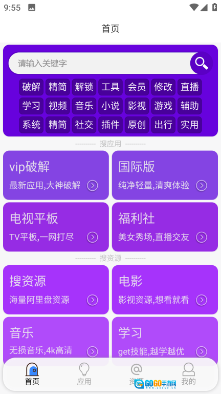 2、在主页,用户可点击顶部的搜索框,输入想要查找的资源关键词来执行搜索操作。