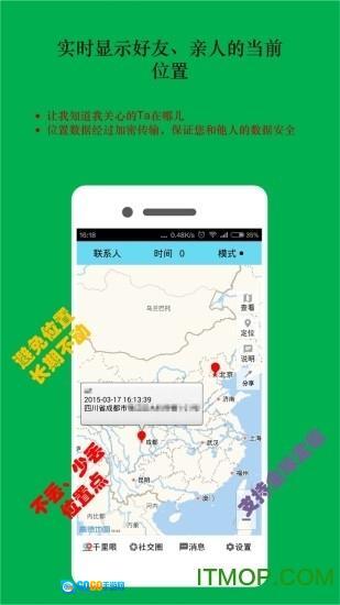 1. 定位精准:能快速且准确地记录您的位置信息,您只需开启并保持“时时位置”功能即可;若对位置精度没有特别高的要求,您无需打开设备的GPS设置。