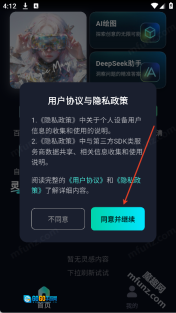 1、打开魅画AI软件点击同意并继续
