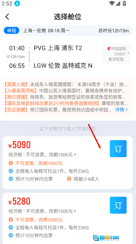 3、完成学生身份认证后,就可以挑选心仪的航班直接预订,享受优惠的票价以及便捷的购票流程。