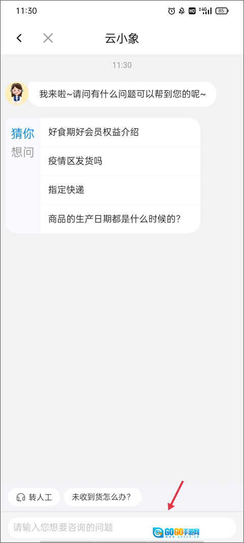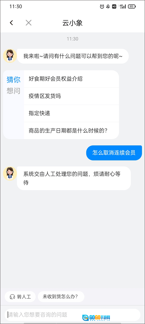 (3)这时客服就会回复你的消息了,要是想获取具体的解决办法,可以转人工服务,会有专门的工作人员为你处理。