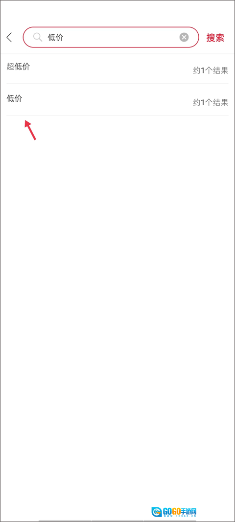 在搜索框里输入“低价”这个关键词后,页面会弹出两个下拉选项,从中点击任意一个即可。