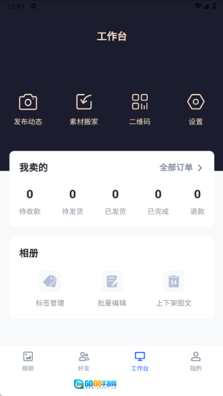 在工作台页面,你能够查看发布动态、进行素材搬家操作,同时也可以了解自己的订单信息。