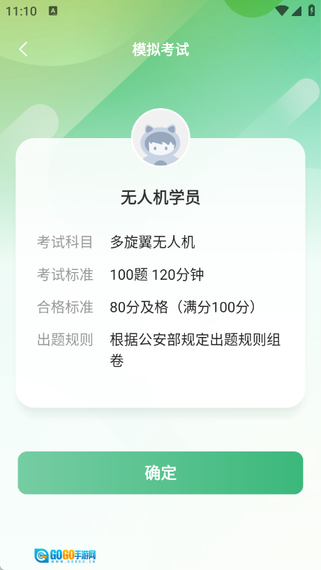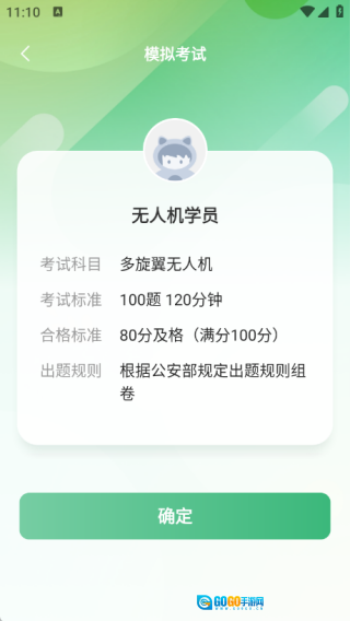 4、进入模拟考试页面后即可参与考试,本次模考设定为100道题目、120分钟答题时长,及格分数为80分,点击“确定”按钮就能开始模考。