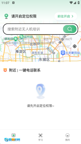 在培训页面里,你能够查询到所在地周边的无人机培训点,用户可随时开启定位导航前往。