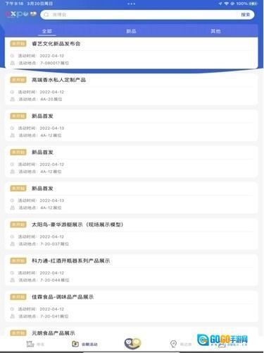 1、导航页面:主要内容是推送重要新闻和公告,还有分别介绍了相关的场馆,以及展商以及展馆分布;