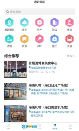 4、“消”遥游页面:展馆服务、美食、特产、酒店、景点、医疗、交通等各类信息;