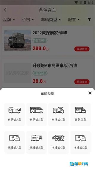 功能1;房车报价、A型自行、B型自行、C型拖挂、A型拖挂、B型拖挂、C型拖挂、D型商务车、以及移动木屋...