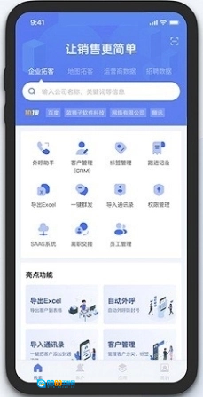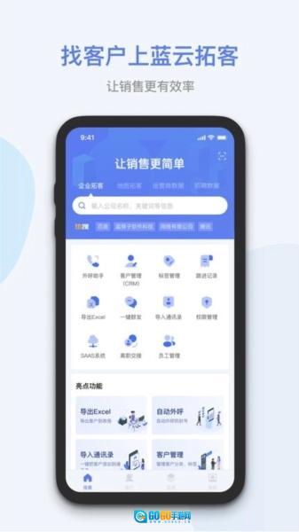 蓝云拓客是一款专为销售精英量身定制的高效拓客助手。这款应用巧妙地融合了地图功能,帮助销售人员快速锁定潜在客户,提供最新的招聘和运营商数据,确保您始终掌握最新市场动态。通过蓝云拓客,您可以轻松跟踪并管理客户,利用丰富的销售工具提升业绩,让销售工作变得更简单。不要让过时的数据阻碍您的步伐,蓝云拓客助您挖掘精准客户线索,加速业务增长。