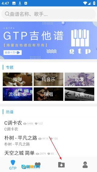 1、启动GTP吉他谱应用,进入主界面后,点击底部导航栏中的“本地”选项。