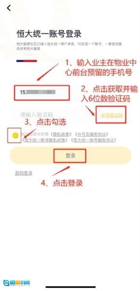 步骤3业主本人使用其在物业中心前台预留的手机号码进行注册登录