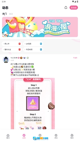 6、支持发布图文动态进行分享,选择动态可以进行点赞、评论等;