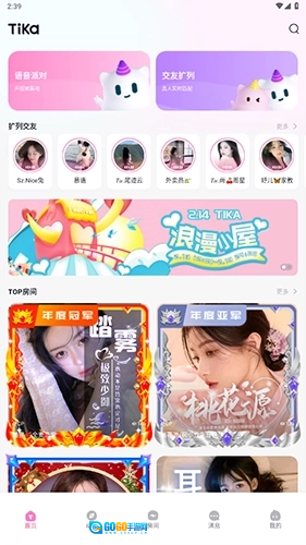 TiKa是一款由厦门仟淼信息咨询服务有限公司研发的语音社交软件。在这里,为你提供了各种类型的语音聊天室,你可以与来自全国各地的小伙伴们一起享受聊天的乐趣,还可以开黑玩游戏。除此之外,你可以遇到命中注定的那个TA,发展一段新的恋情。在这里,不看外貌,只听声音,好听的声音可以吸引更多的人互动。有需要的用户不要错过这款软件,快来体验一番吧!