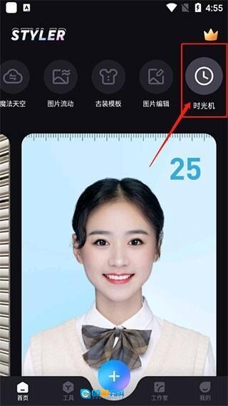 1、首先在本站下载软件,接着打开软件,在首页的上方找到“时光机”功能入口。