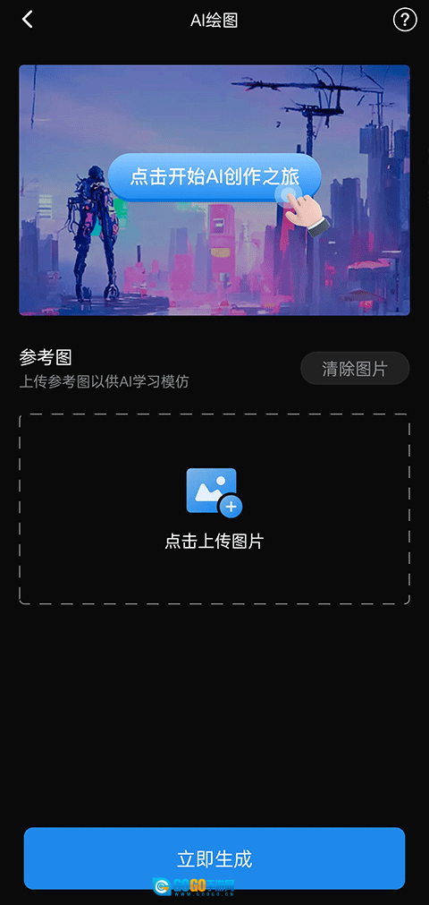3、上传图片,点击立即生成即可;