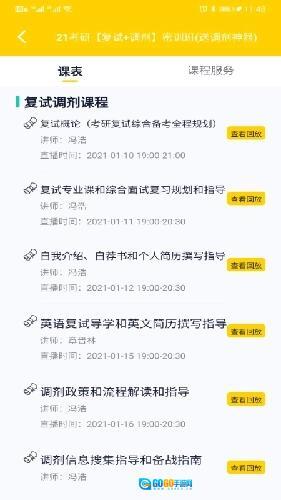 1、进入课程中心查看带来的考研备考课程,可分学科查看;