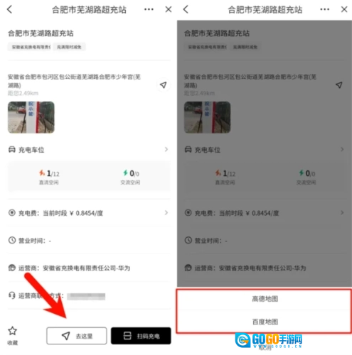选定充电站点后,点击“去这里”可以导航前往。
