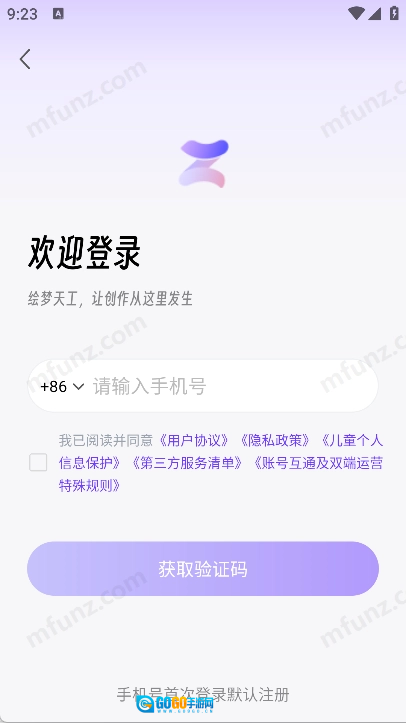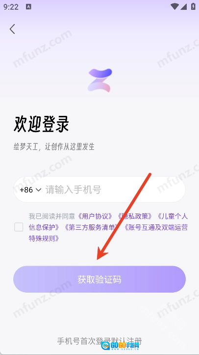 4、输入手机号和验证码即可快速登录