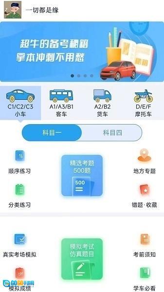 财仝驾考是您的全方位驾考助手,专为驾驶考试备考者打造的一款高效学习应用。覆盖科目一至科目四,涵盖各类车型考试,助您轻松掌握考试知识点,通过详细解析和模拟实战,让您在驾照考试中一展身手,安全驾驶,从此无忧!首页实时更新的真题与驾驶技巧,让您的驾考之路更加畅通无阻。如果你有需要的话,那就赶快试试吧!