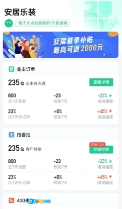 安居乐装是专为安居客装修商家打造的移动工具,致力于提高连接效率,赋能装修、建材商家。通过”安选装修平台”管理系统,装修、建材商家能够在安居客开放平台上开通网络店铺,发布案例、产品、促销信息和市场资讯。同时安居客提供商家专属的便捷功能,支持装修、建材商家与安居客海量装修业主有效互动,有效促进线下交易。