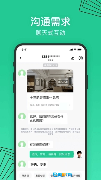 4、互动沟通平台:提供便捷的沟通工具,支持用户与设计师在线交流,实时解决装修中的问题。